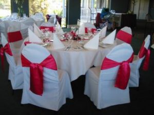 Melbourne Chair Covers hire have traditional highest quality chair covers priced to hire from $1.90 each / Minimum order 49 . This includes your choice of sash in organza or satin tied as a bow or a modern fold.